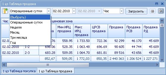 Для того чтобы изменить отображаемый временной диапазон в таблицах, необходимо в Панели управления окном, располагающейся вверху таблицы, установить один из стандартных диапазонов, либо произвольный. Для задания произвольного периода необходимо в поле выбора диапазона установить значение «(Выбрать)», а затем указать даты начала и окончания временного диапазона, используя встроенный календарь.