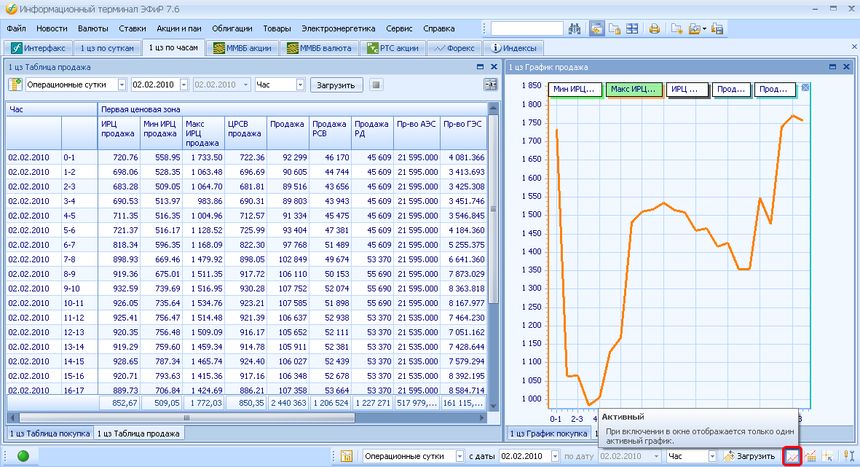 Панель управления графиком позволяет просматривать отдельно выбранный график. Для этого сначала при помощи левой кнопки мыши следует выделить интересующий ряд в легенде, а затем нажать на панели кнопку