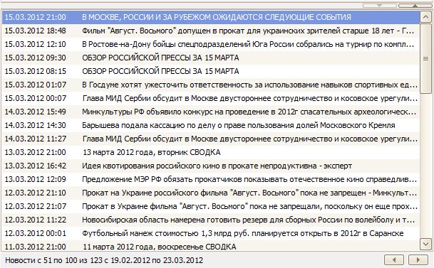 Окно результата поиска будет содержать заголовки новостей