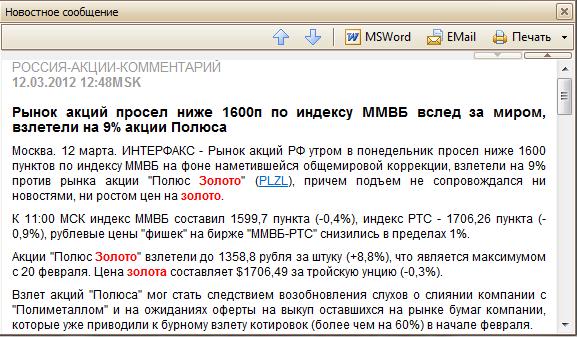 В окне результатов поиска выберите интересующую новость и кликнете на правую кнопку мыши. Откроется новостное сообщение, в котором красным цветом будет выделено поисковое слово