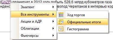 - Закладка Все инструменты, позволяет открыть сразу по всем инструментам текущий ход торгов, таблицу с официальными итогами и гистограмму