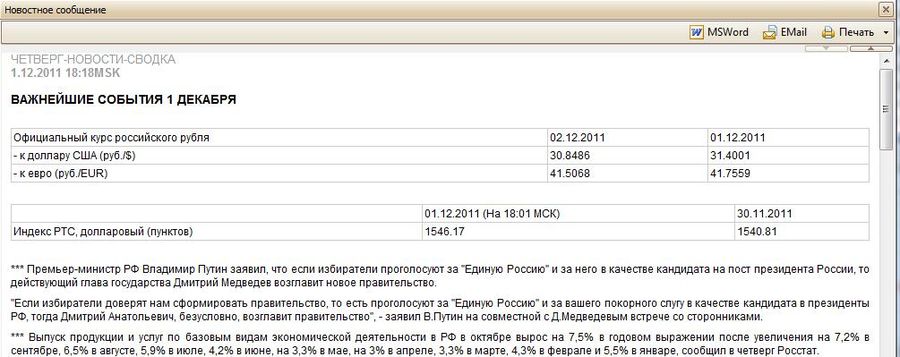 Окно вызывается с помощью команды главного меню программы Новости>Важнейшие или с помощью кнопки