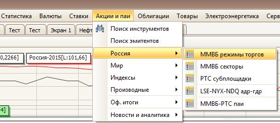 Выберите в главном меню любую закладку, где присутствуют инструменты, например ММВБ: