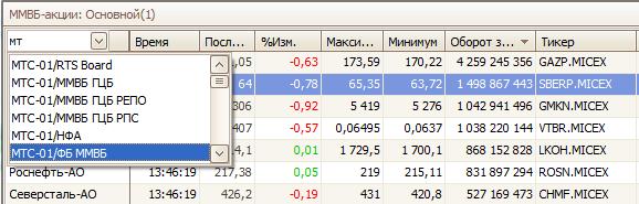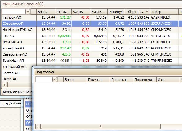Ход торгов >> Добавление инструмента в окне Ход торгов
