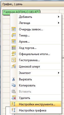 на панели инструментов График или в контекстном меню инструмента в окне График выберите команду Настройки инструмента