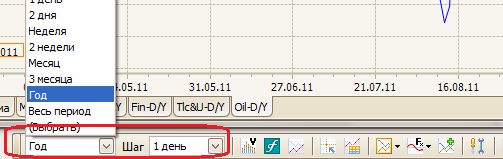 Изменение интервала времени на графике осуществляется через панель управления графиком, для этого выберите интересующий период и шаг