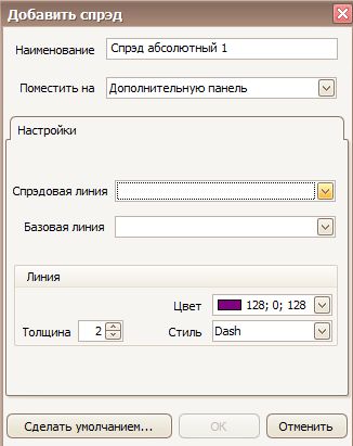Команда Редактировать - откроет диалоговое окно Добавить спрэд. Это же окно можно вызвать, нажав быстро 2 раза левую кнопку мыши.
